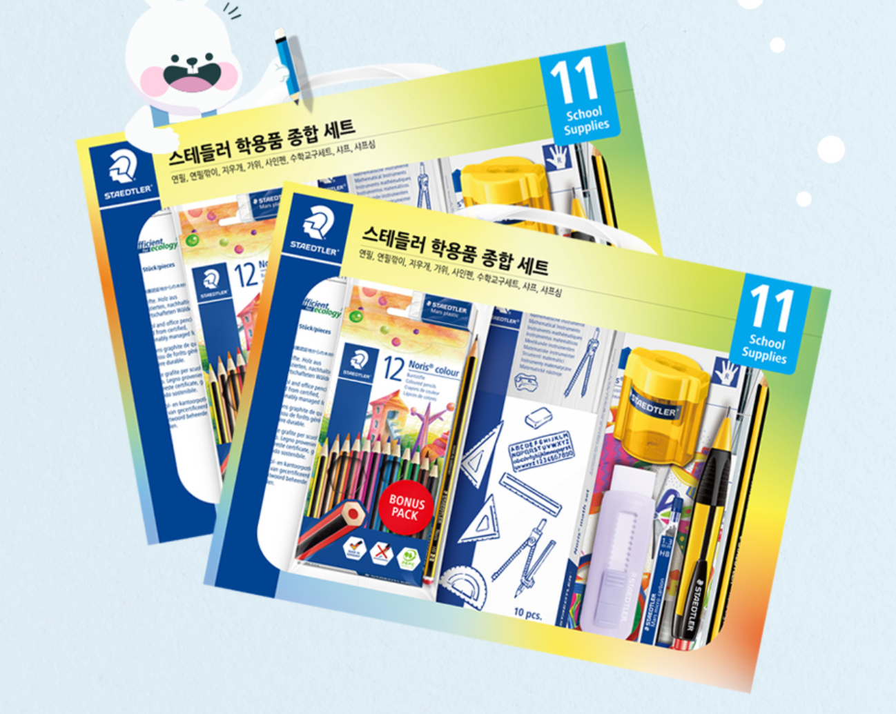 출처 : 스테들러 상품페이지 스테들러 스쿨 세트 필기구 학용품 어린이 청소년 입학 생일 선물 문구세트 : 감성볼펜