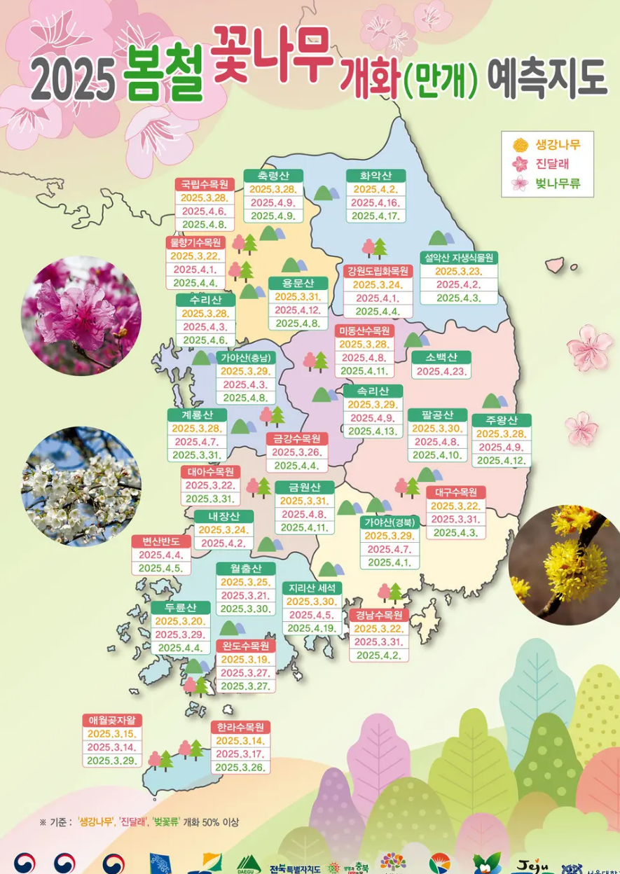 ☑️ 2025년 봄 철 꽃나무 개화(만개) 예측지도