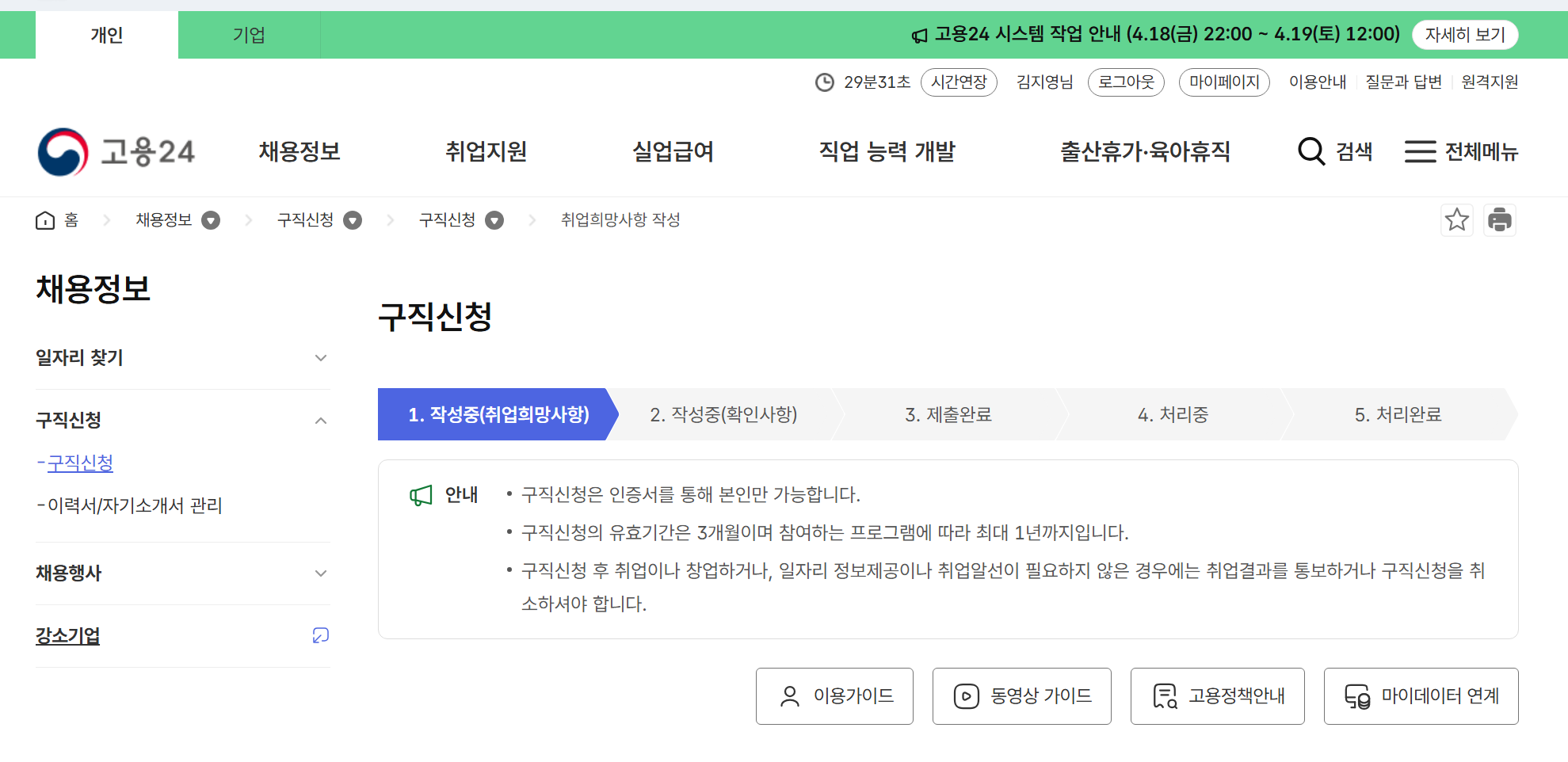 국민내일배움카드는 자신에게 맞는 일자리를 찾기 위한 지원이므로, 실업 상태인 분의 경우 내가 일자리를 찾고 있는 상태임을 고용24에 등록해야 합니다. [구직신청 바로가기]
